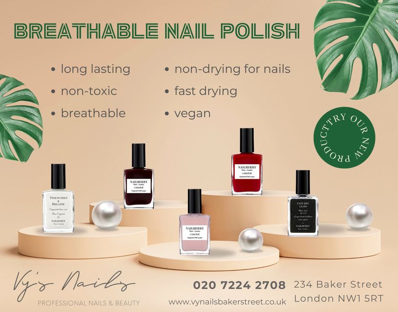 Using premium ingredients with oxygenated technology, Nailberry nail polish offer a range of products that use a formula permeable to air and moisture vapour, allowing your nails to breathe and grow naturally. The products are non-toxic and non-drying for nails.